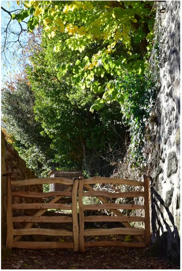 En Occitanie, à 10 minutes du lac du Salagou, l'atelier du SAUTE MOUTON fabrique des portails et portillons en bois de chêne vert (Quercus ilex)